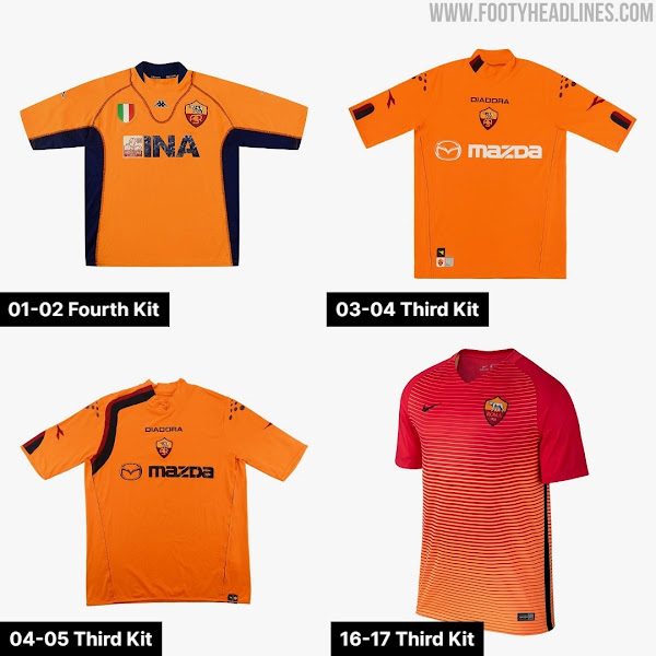AS Roma have never used orange for their away shirt. They often used orange for their third shirt in the 2000s.